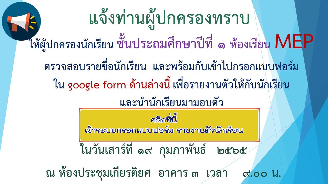 ประกาษรายงานตัว ป1 MEP ปศ-65