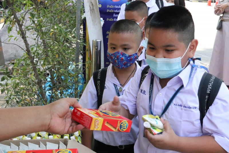 แจกขนมนักเรียน ที่ได้รับการสนับสนุนขนมจาก สพฐ.กทม.(1/2/2564)