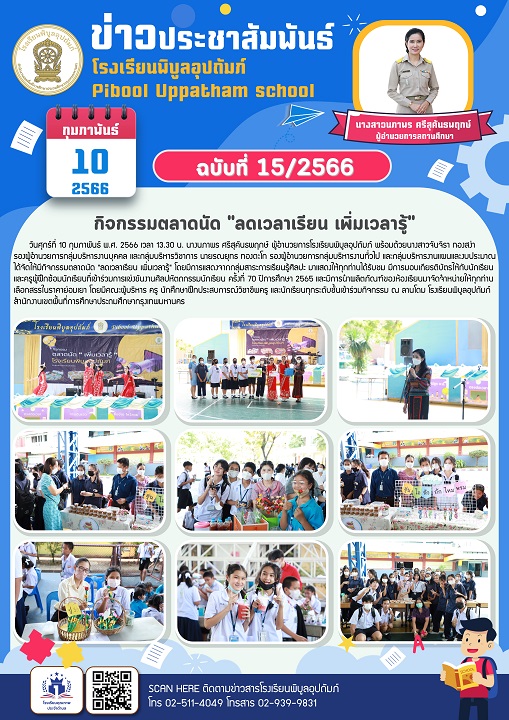 จดหมายข่าวฉบับที่ 15/2566 ีกิจกรรมตลาดนัด "ลดเวลาเรียน เพิ่มเวลารู้" (10/02/2566)