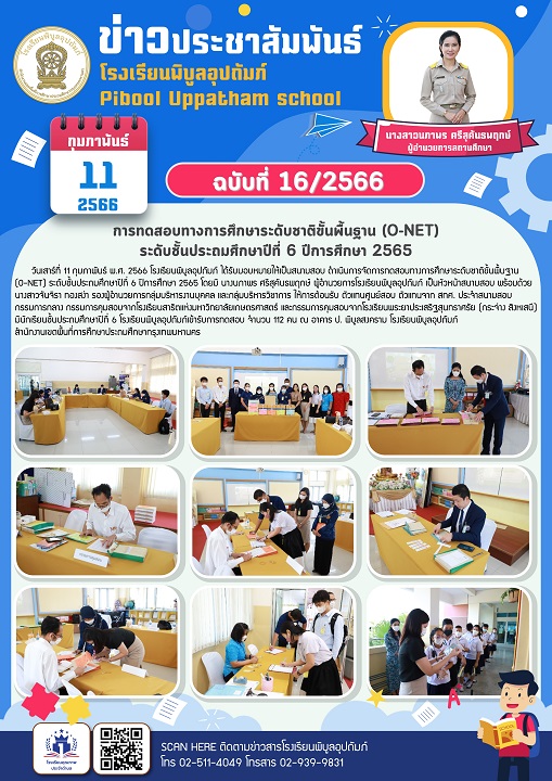 จดหมายข่าวฉบับที่ 16/2566 เป็นสนามสอบ ดำเนินการจัดการทดสอบทางการศึกษาระดับชาติขั้นพื้นฐาน (O-NET) ระดับชั้นประถมศึกษาปีที่ 6 ปีการศึกษา 2565 (11/02/2566)