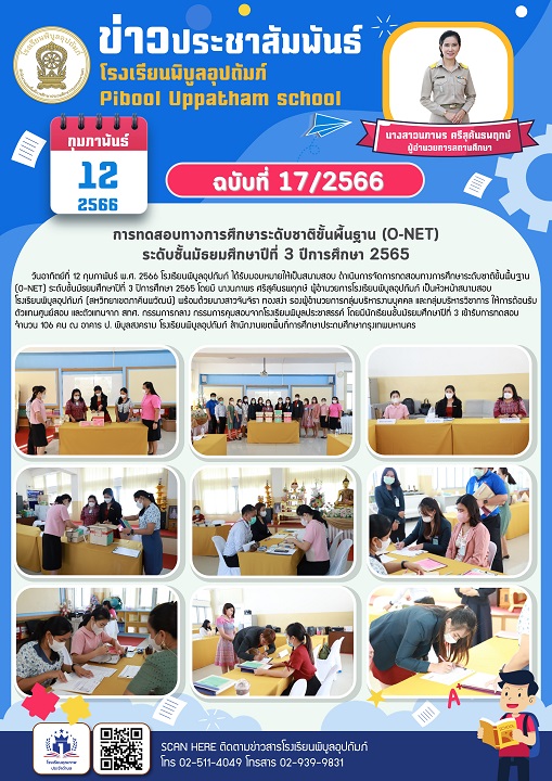 จดหมายข่าวฉบับที่ 17/2566 เป็นสนามสอบ ดำเนินการจัดการทดสอบทางการศึกษาระดับชาติขั้นพื้นฐาน (O-NET) ระดับชั้นมัธยมศึกษาปีที่ 3 ปีการศึกษา 2565 (12/02/2566)