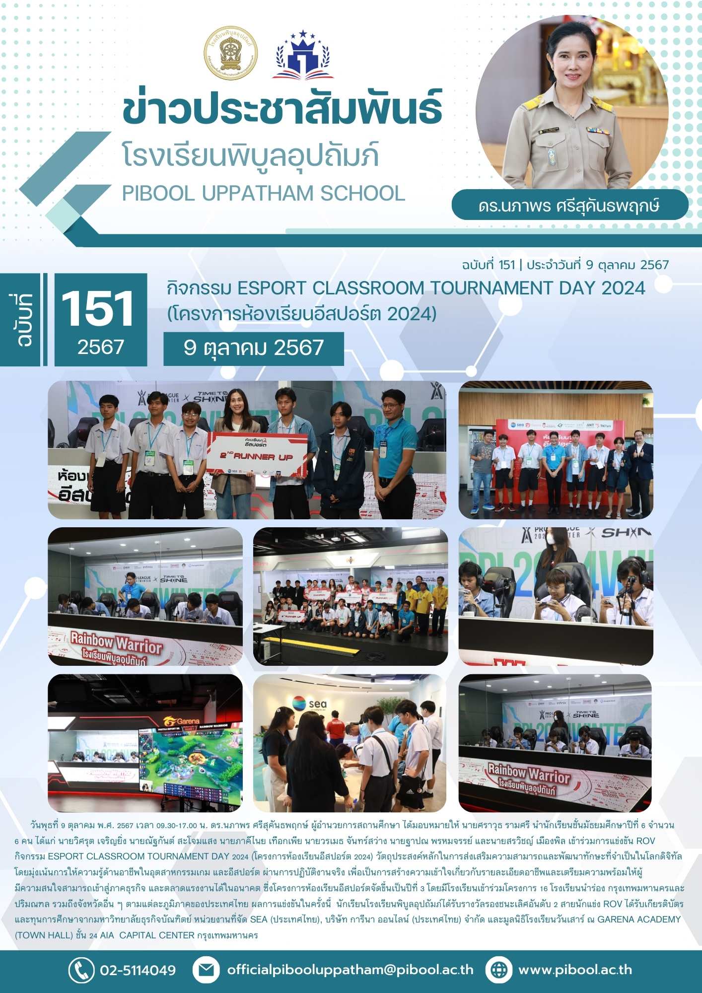 ข่าวประชาสัมพันธ์ ฉบับที่ 151/2567 กิจกรรม Esport Classroom Tournament Day 2024 (โครงการห้องเรียนอีสปอร์ต 2024)