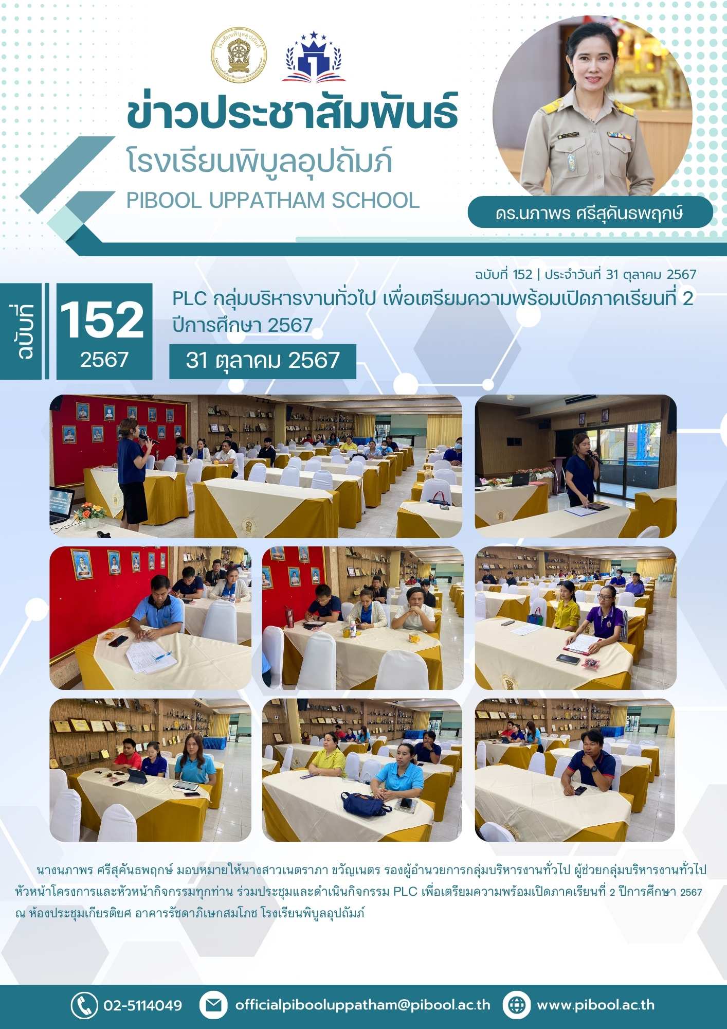 ข่าวประชาสัมพันธ์ ฉบับที่ 152/2567 PLC กลุ่มบริหารงานทั่วไป เพื่อเตรียมความพร้อมเปิดภาคเรียนที่ 2 ปีการศึกษา 2567