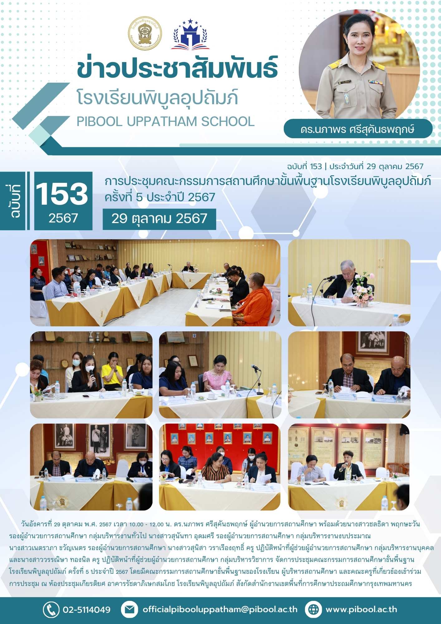 โรงเรียนพิบูลอุปถัมภ์ ครั้งที่ 5 ประจำปี 2567 โดยมีคณะกรรมการสถานศึกษาขั้นพื้นฐานของโรงเรียน ผู้บริหารสถานศึกษา และคณะครูที่เกี่ยวข้องเข้าร่วม