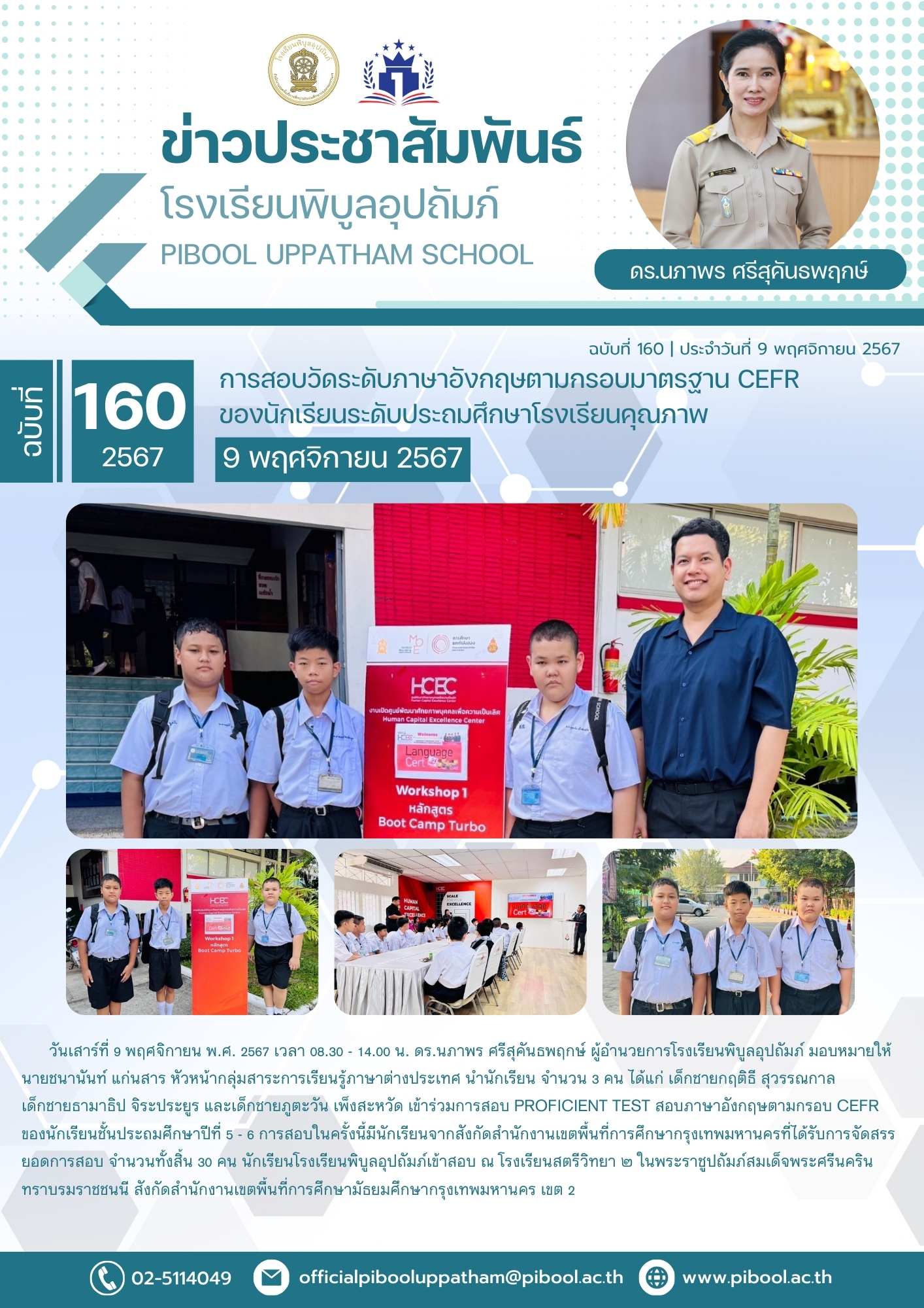 ข่าวประชาสัมพันธ์ ฉบับที่ 160/2567 การสอบวัดระดับภาษาอังกฤษตามกรอบมาตรฐาน CEFR ของนักเรียนระดับประถมศึกษาโรงเรียนคุณภาพ
