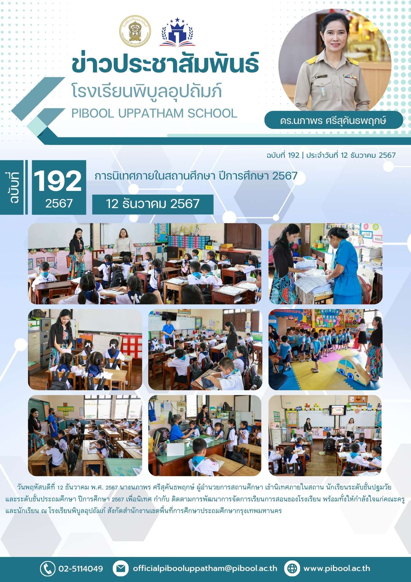 ข่าวประชาสัมพันธ์ ฉบับที่ 192/2567 การนิเทศภายในสถานศึกษา ปีการศึกษา 2567
