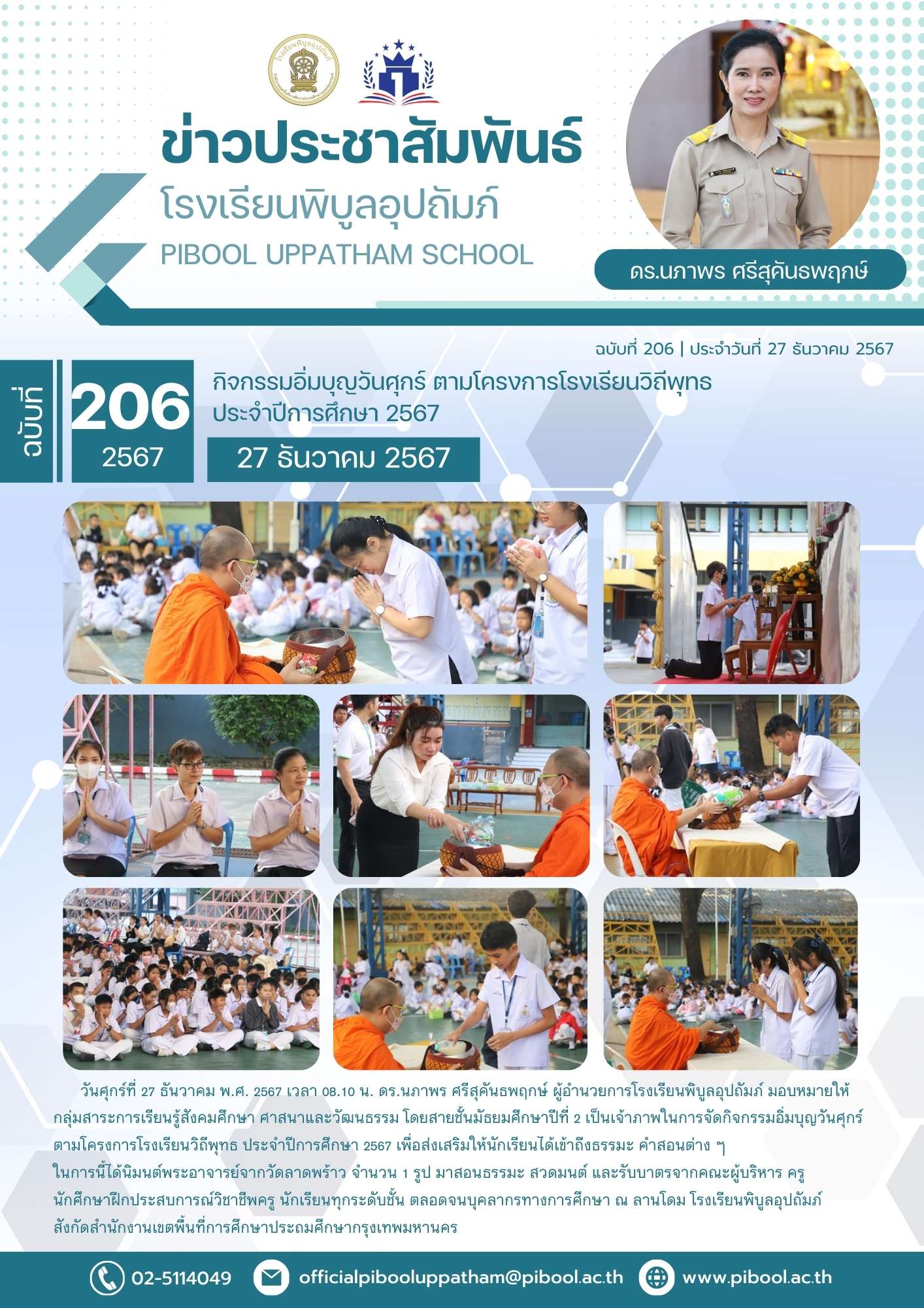 ข่าวประชาสัมพันธ์ ฉบับที่ 206/2567 กิจกรรมอิ่มบุญวันศุกร์ ตามโครงการโรงเรียนวิถีพุทธ ประจำปีการศึกษา 2567