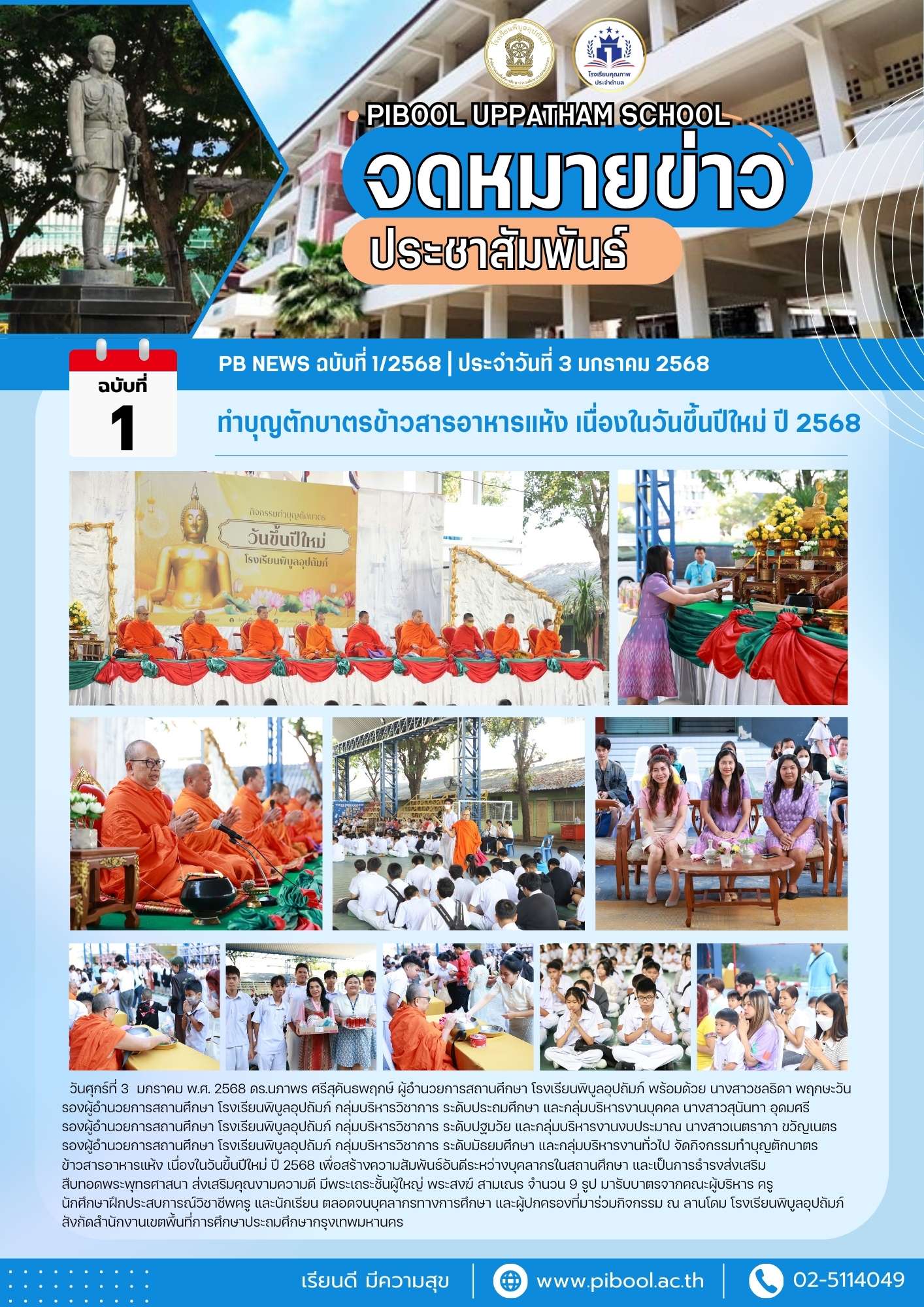 ข่าวประชาสัมพันธ์ ฉบับที่ 1/2568 ทำบุญตักบาตรข้าวสารอาหารแห้ง เนื่องในวันขึ้นปีใหม่ ปี 2568