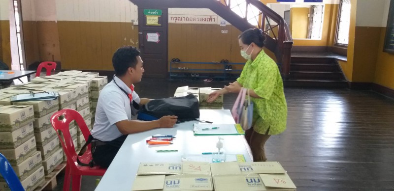 ทางโรงเรียนแจกนมกล่องปิดเทอมให้กับนักเรียนอนุบาล และประถมศึกษา (26/03/2564)