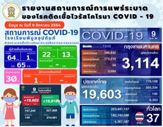 ศูนย์รายงานสถานการณ์ COVID - 19 (ประจำวันที่ 9 สิงหาคม 2564) |