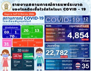 ศูนย์รายงานสถานการณ์ COVID - 19 (ประจำวันที่ 12 สิงหาคม 2564) |