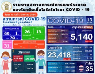 ศูนย์รายงานสถานการณ์ COVID - 19 (ประจำวันที่ 13 สิงหาคม 2564) |