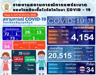 ศูนย์รายงานสถานการณ์ COVID - 19 (ประจำวันที่ 18 สิงหาคม 2564) |