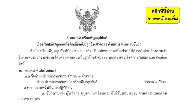 การรับสมัครงานของโรงเรียนพิบูลอุปถัมภ์