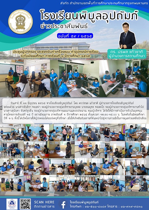 จดหมายข่าวฉบับที่ 59/2565 ประชุมผู้ปกครอง และแจกเงินค่าเครื่องแบบ ค่าอุปกรณ์การเรียน ระดับชัั้นมัธยมศึกษา ภาคเรียนที่ 1 ปีการศึกษา 2565 (11/06/2565)