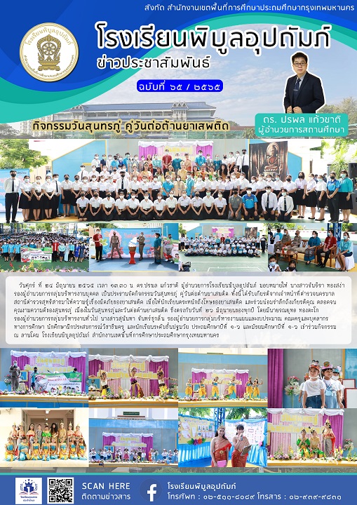 จดหมายข่าวฉบับที่ 65/2565 กิจกรรมวันสุนทรภู่ และวันต่อต้านยาเสพติด ประจำปีการศึกษา 2565 (24/06/2565)
