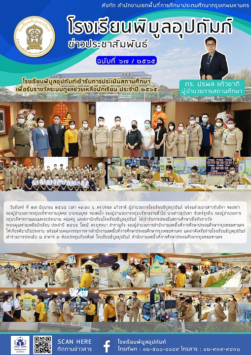 จดหมายข่าวฉบับที่ 67/2565 โรงเรียนพิบูลอุปถัมภ์เข้ารับการประเมินสถานศึกษาเพื่อรับรางวัลระบบดูแลช่วยเหลือนักเรียน ประจำปีการศึกษา 2565 (27/06/2565)