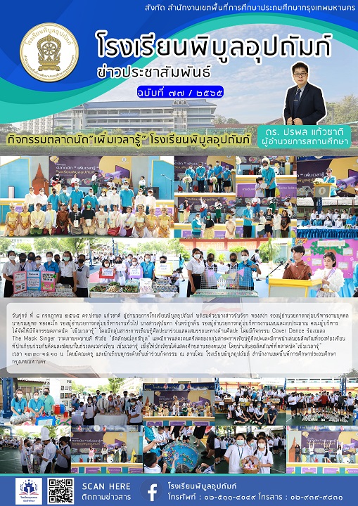 จดหมายข่าวฉบับที่ 77/2565 กิจกรรมตลาดนัด"เพิ่มเวลารู้" โรงเรียนพิบูลอุปถัมภ์ (08/07/2565)