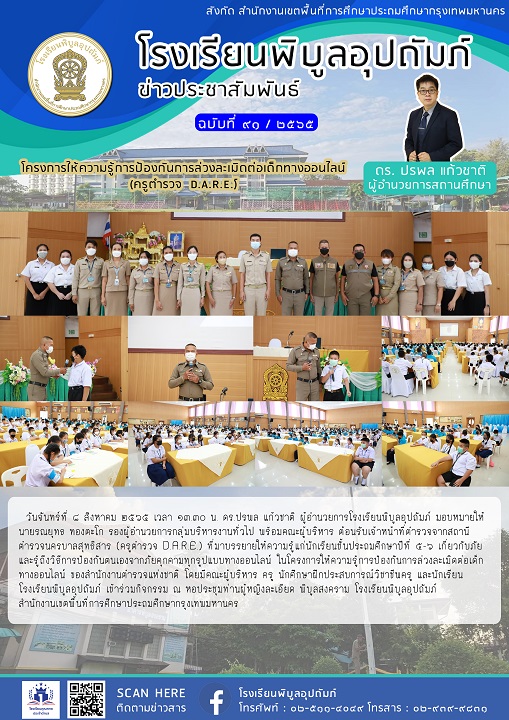 จดหมายข่าวฉบับที่ 91/2565 โครงการให้ความรู้การป้องกันการล่วงละเมิดต่อเด็กทางออนไลน์ (ครูตำรวจ D.A.R.E.) (08/08/2565)