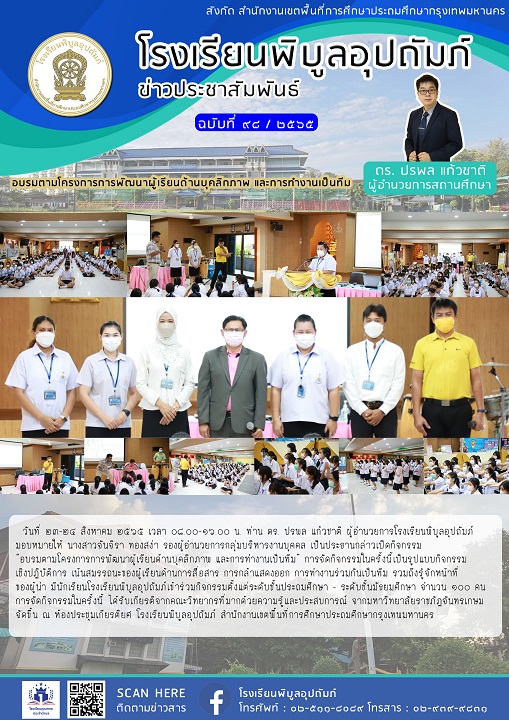 จดหมายข่าวฉบับที่ 98/2565 อบรมตามโครงการพัฒนาผู้เรียนด้านบุคลิกภาพ และการทำงานเป็นทีม (23/08/2565)