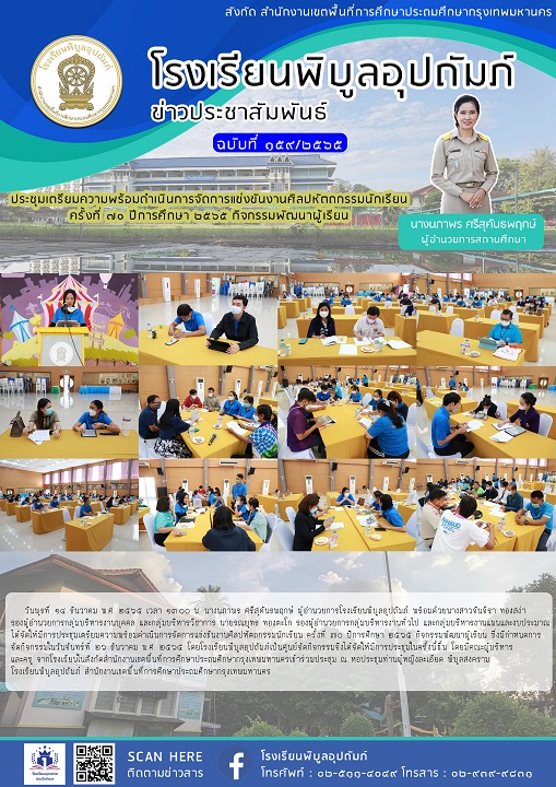 จดหมายข่าวฉบับที่ 159/2565 การประชุมเตรียมความพร้อมดำเนินการจัดการแข่งขันงานศิลปหัตถกรรมนักเรียน ครั้งที่ 70 ปีการศึกษา 2565 กิจกรรมพัฒนาผู้เรียน (14/12/2565)