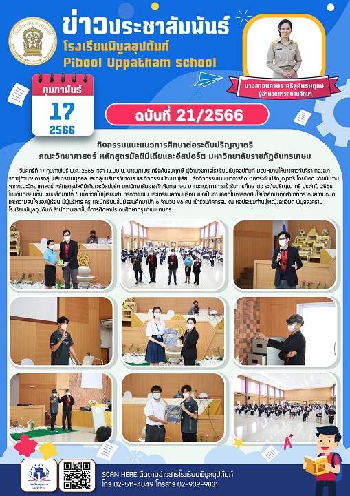จดหมายข่าวฉบับที่ 21/2566 กิจกรรมแนะแนวการศึกษาต่อระดับปริญญาตรี (17/02/2566)