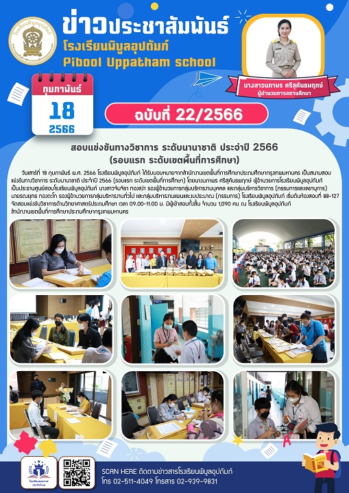 จดหมายข่าวฉบับที่ 22/2566 เป็นสนามสอบแข่งขันทางวิชาการ ระดับนานาชาติ ประจำปี 2566 (รอบแรก ระดับเขตพื้นที่การศึกษา) (18/02/2566)