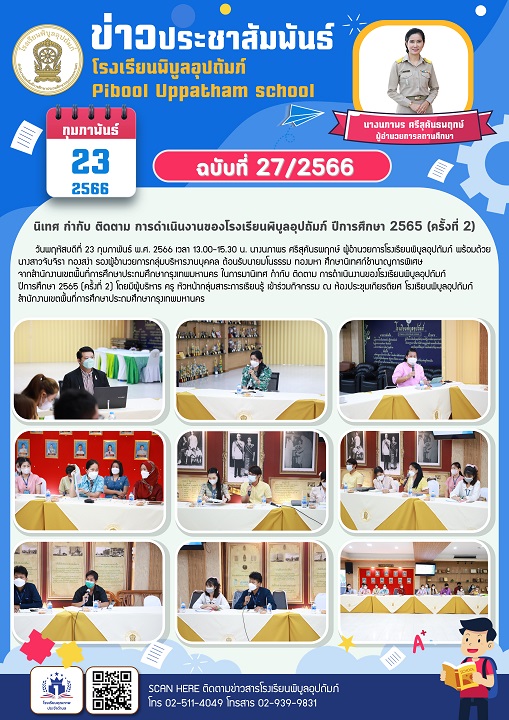 จดหมายข่าวฉบับที่ 27/2566 นิเทศ กำกับ ติดตาม การดำเนินงานของโรงเรียนพิบูลอุปถัมภ์ ปีการศึกษา 2565 (ครั้งที่ 2) (23/02/2566)