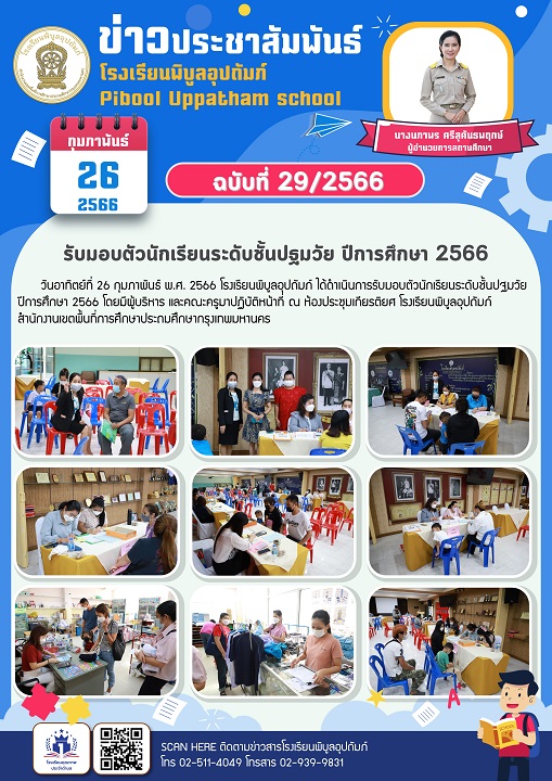 จดหมายข่าวฉบับที่ 29/2566 การรับมอบตัวนักเรียนระดับชั้นปฐมวัย ปีการศึกษา 2566 (26/02/2566)