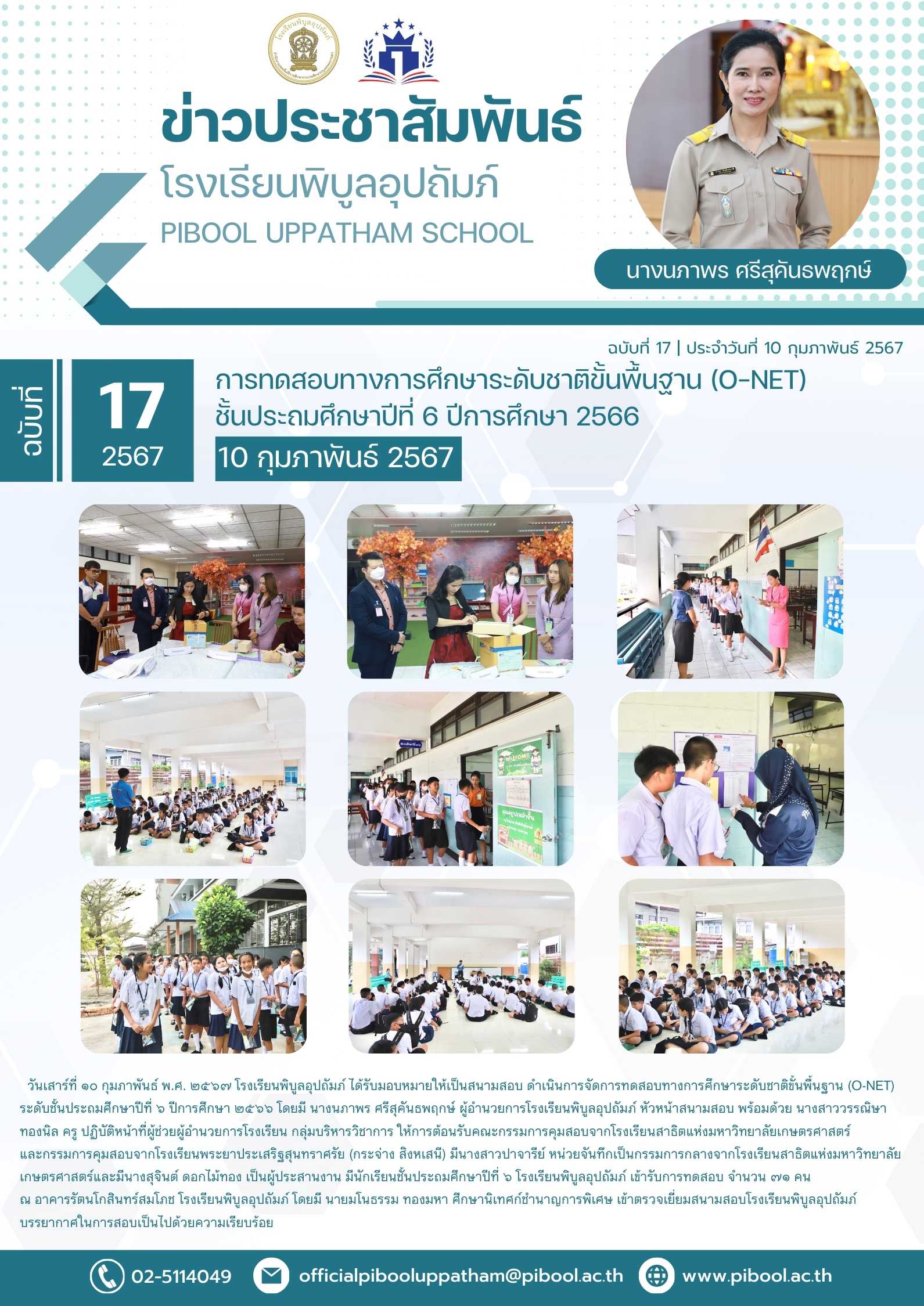 ข่าวประชาสัมพันธ์ ฉบับที่ 17/2567 การทดสอบทางการศึกษาระดับชาติขั้นพื้นฐาน (O-NET) ชั้นประถมศึกษาปีที่ 6 ปีการศึกษา 2566