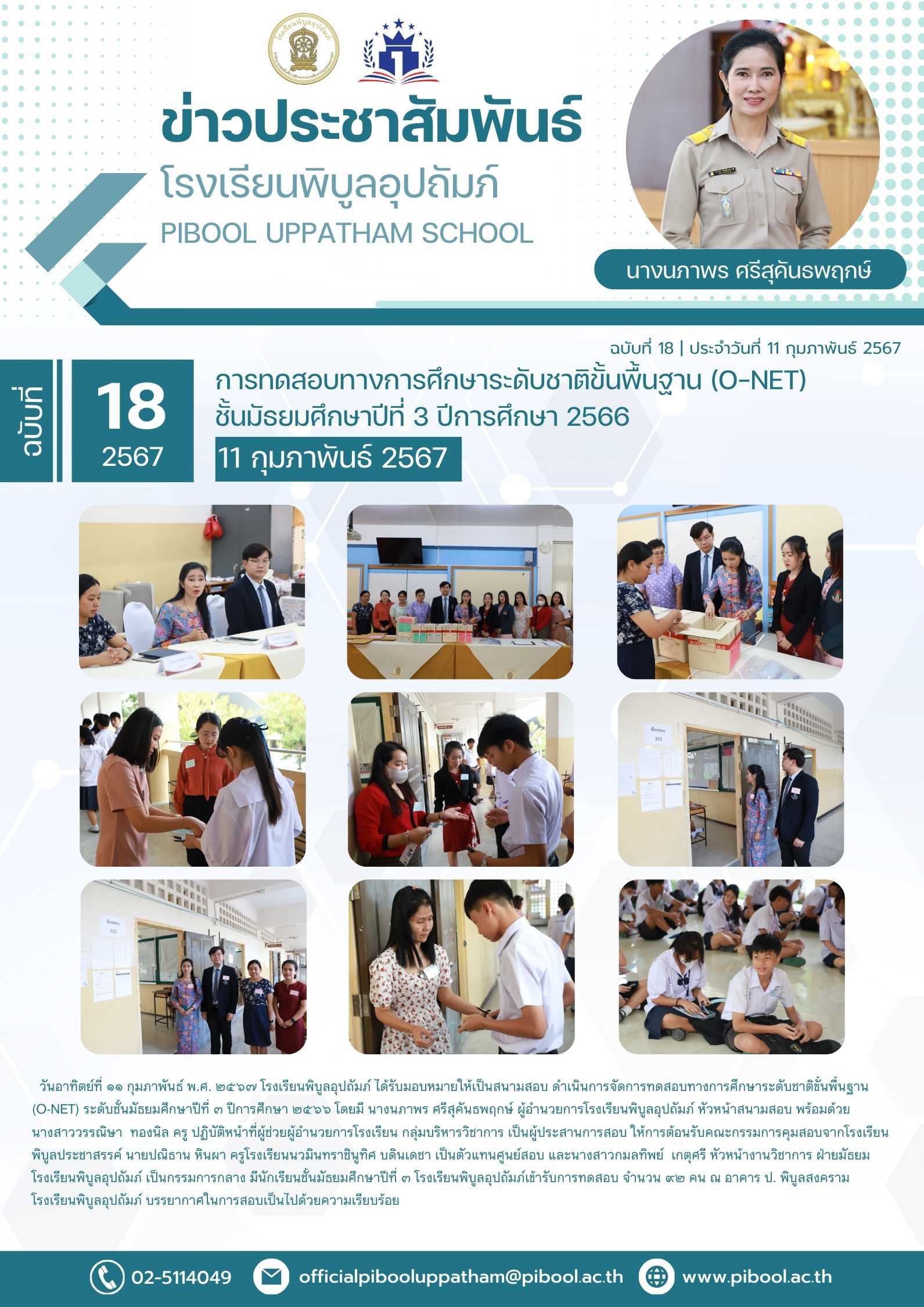 ข่าวประชาสัมพันธ์ ฉบับที่ 18/2567 การทดสอบทางการศึกษาระดับชาติขั้นพื้นฐาน (O-NET) ชั้นมัธยมศึกษาปีที่ 3 ปีการศึกษา 2566