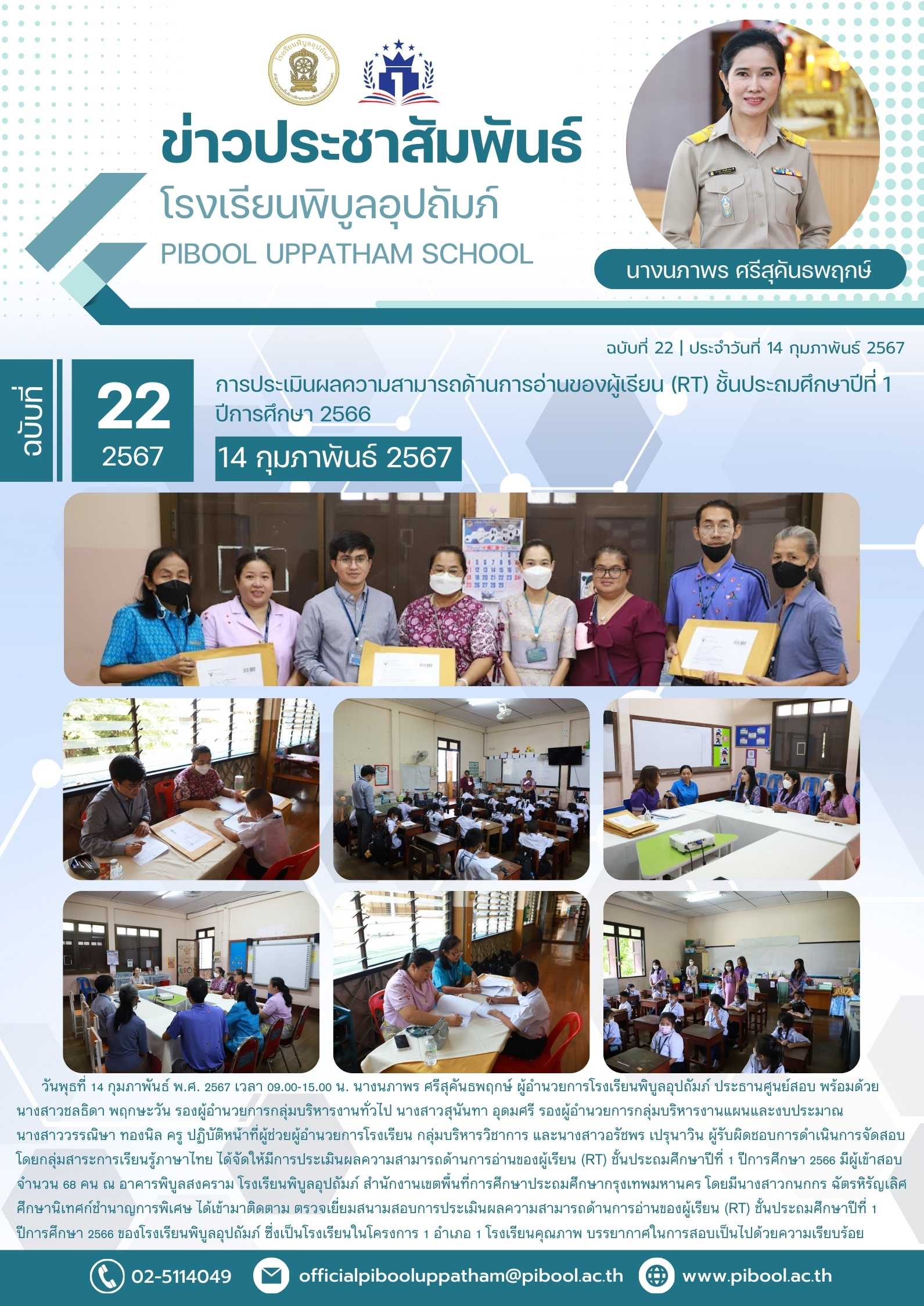 ข่าวประชาสัมพันธ์ ฉบับที่ 22/2567 การประเมินผลความสามารถด้านการอ่านของผู้เรียน (RT) ชั้นประถมศึกษาปีที่ 1 ปีการศึกษา 2566