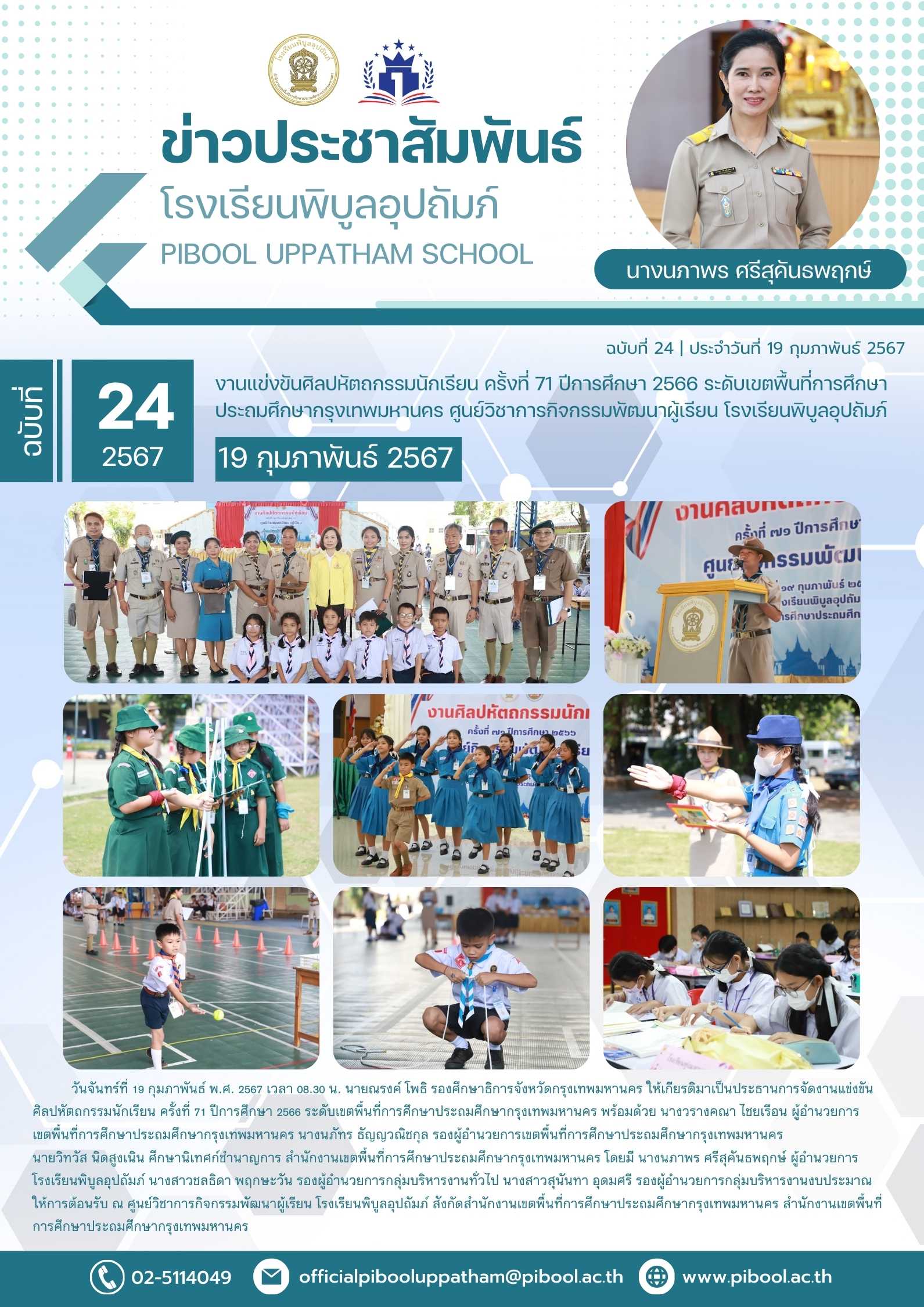 ข่าวประชาสัมพันธ์ ฉบับที่ 24/2567 งานแข่งขันศิลปหัตถกรรมนักเรียน ครั้งที่ 71 ปีการศึกษา 2566 ระดับเขตพื้นที่การศึกษาประถมศึกษากรุงเทพมหานคร ศูนย์วิชาการกิจกรรมพัฒนาผู้เรียน โรงเรียนพิบูลอุปถัมภ์