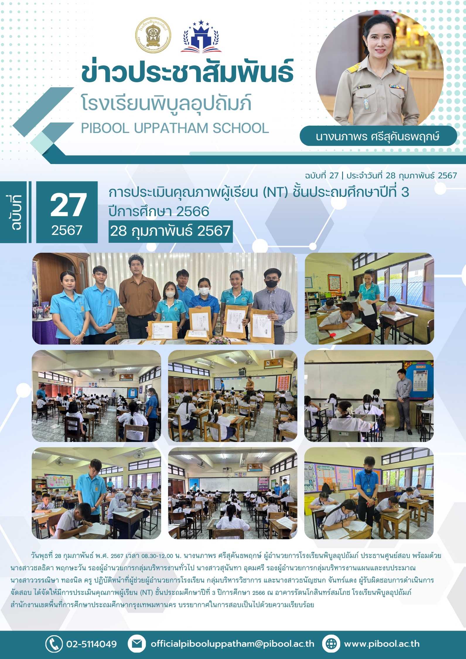 ข่าวประชาสัมพันธ์ ฉบับที่ 27/2567 การประเมินคุณภาพผู้เรียน (NT) ชั้นประถมศึกษาปีที่ 3 ปีการศึกษา 2566