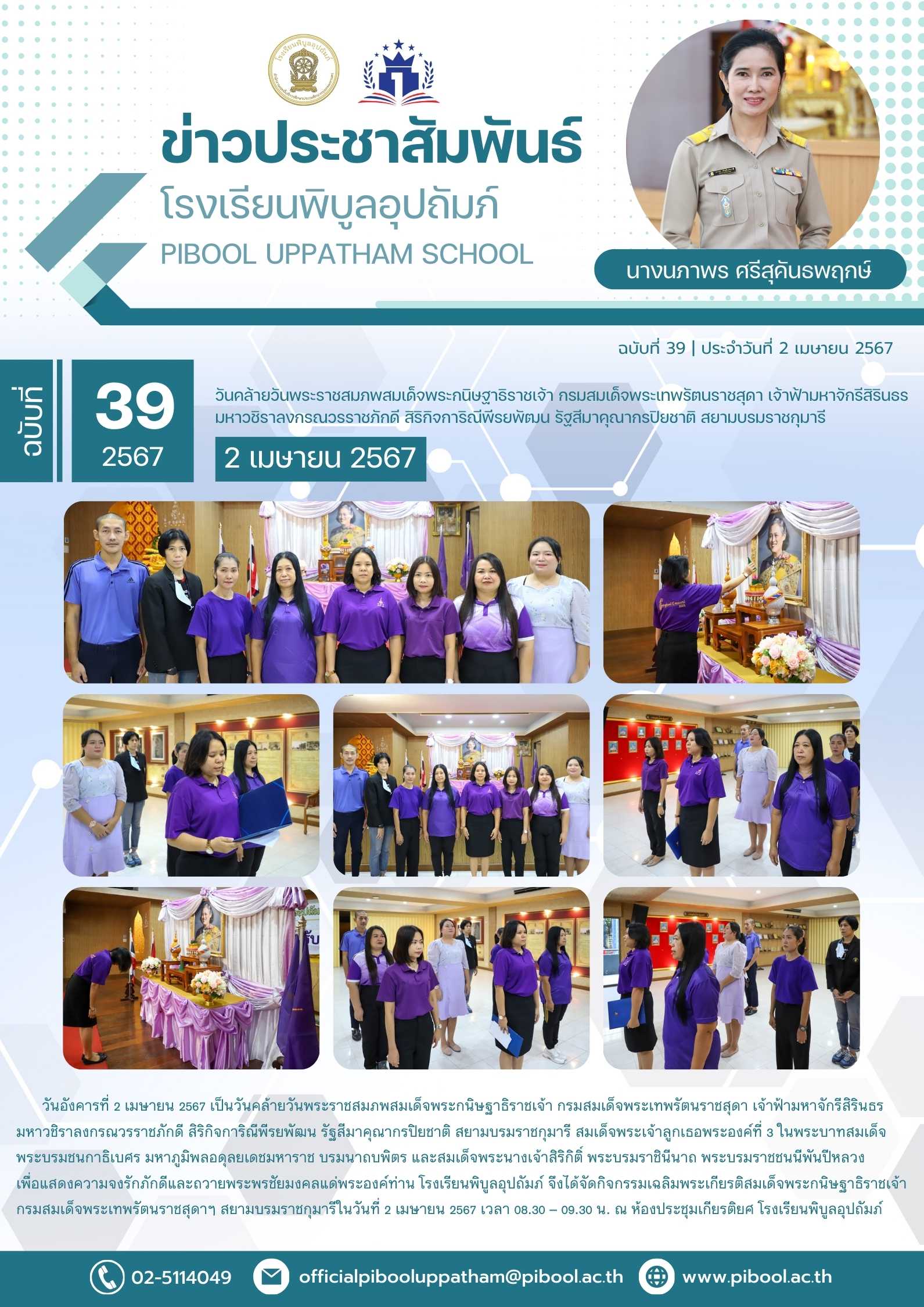 ข่าวประชาสัมพันธ์ ฉบับที่ 39/2567 วันคล้ายวันพระราชสมภพสมเด็จพระกนิษฐาธิราชเจ้า กรมสมเด็จพระเทพรัตนราชสุดา เจ้าฟ้ามหาจักรีสิรินธร มหาวชิราลงกรณวรราชภักดี สิริกิจการิณีพีรยพัฒน รัฐสีมาคุณากรปิยชาติ สยามบรมราชกุมารี