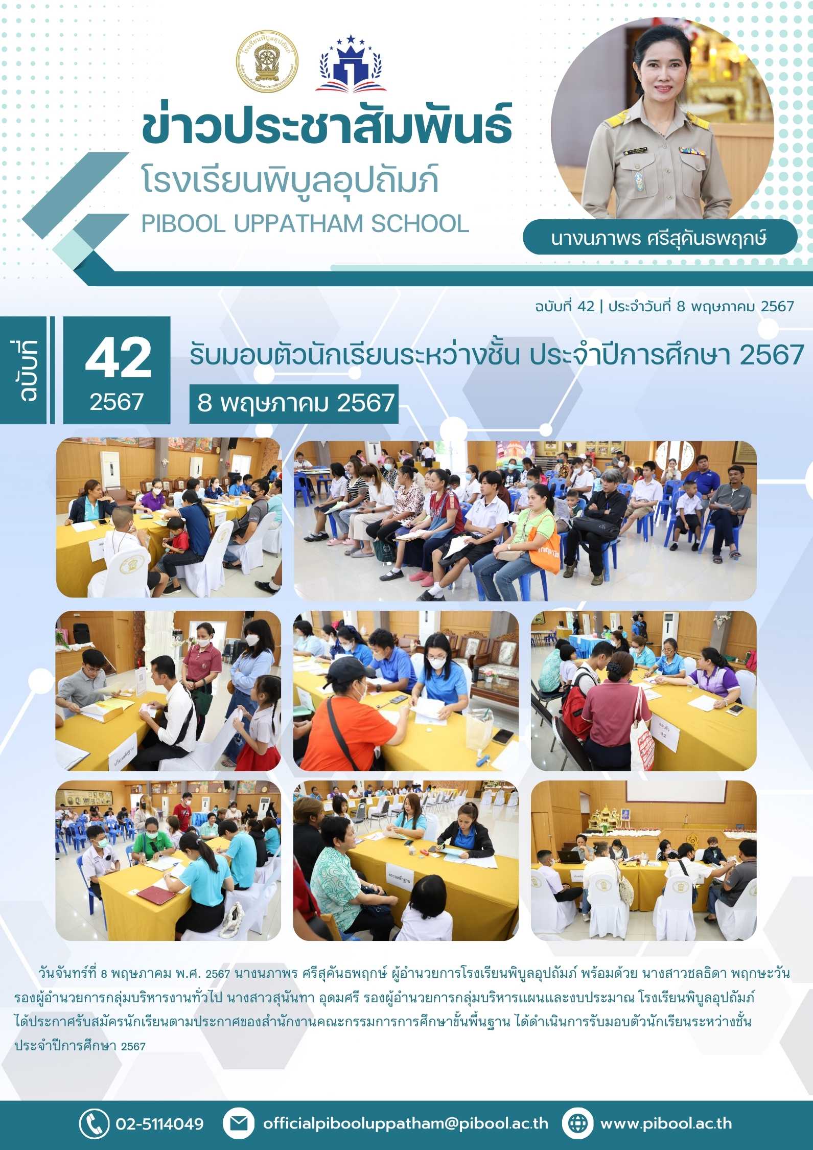 ข่าวประชาสัมพันธ์ ฉบับที่ 42/2567 รับมอบตัวนักเรียนระหว่างชั้น ประจำปีการศึกษา 2567