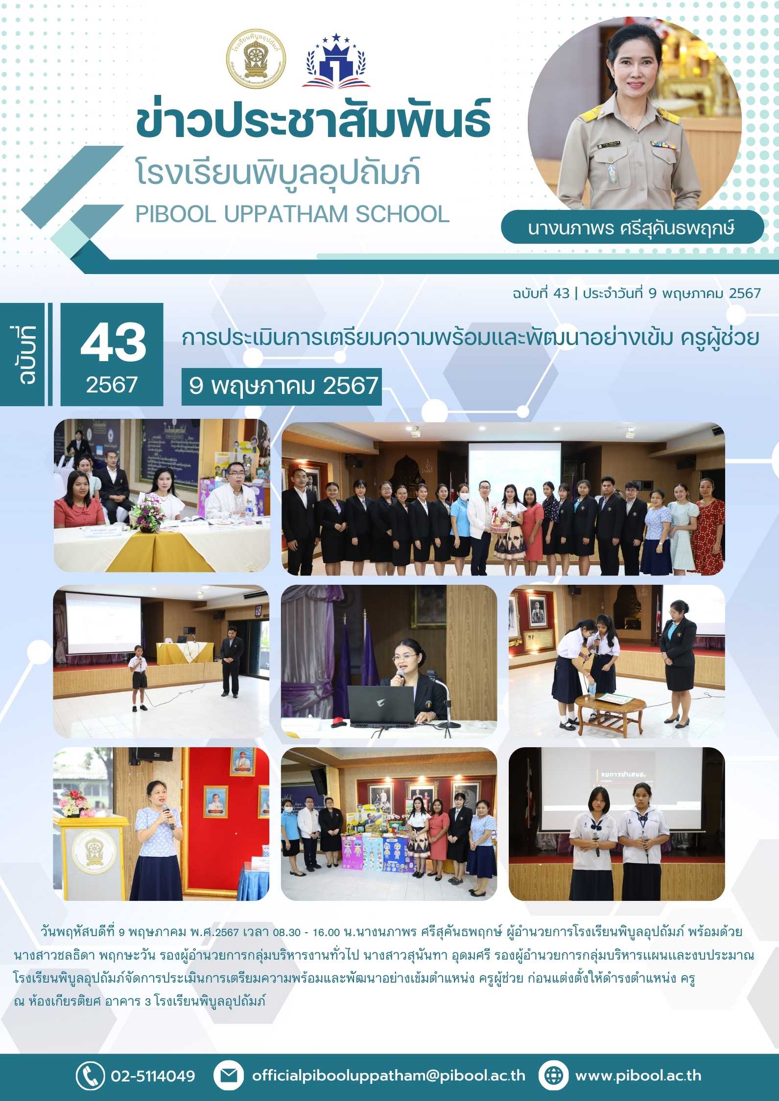 ข่าวประชาสัมพันธ์ ฉบับที่ 43/2567 การประเมินการเตรียมความพร้อมและพัฒนาอย่างเข้ม ครูผู้ช่วย