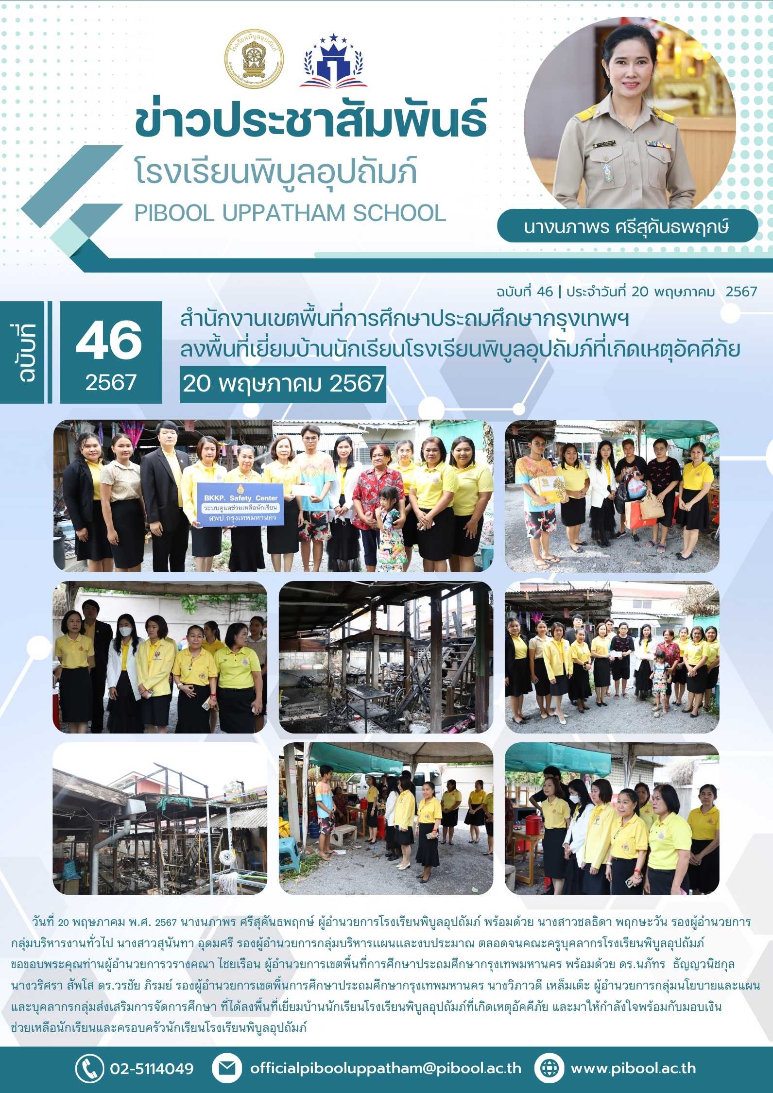 ข่าวประชาสัมพันธ์ ฉบับที่ 46/2567 สำนักงานเขตพื้นที่การศึกษาประถมศึกษากรุงเทพฯ ลงพื้นที่เยี่ยมบ้านนักเรียนโรงเรียนพิบูลอุปถัมภ์ที่เกิดเหตุอัคคีภัย