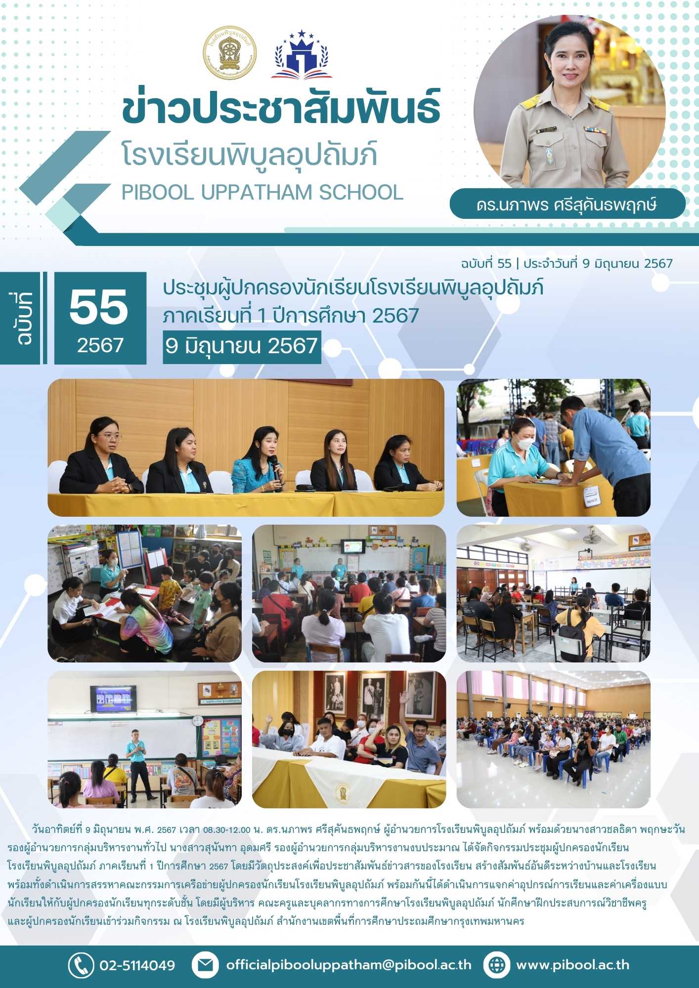 ข่าวประชาสัมพันธ์ ฉบับที่ 55/2567 ประชุมผู้ปกครองนักเรียนโรงเรียนพิบูลอุปถัมภ์ ภาคเรียนที่ 1 ปีการศึกษา 2567