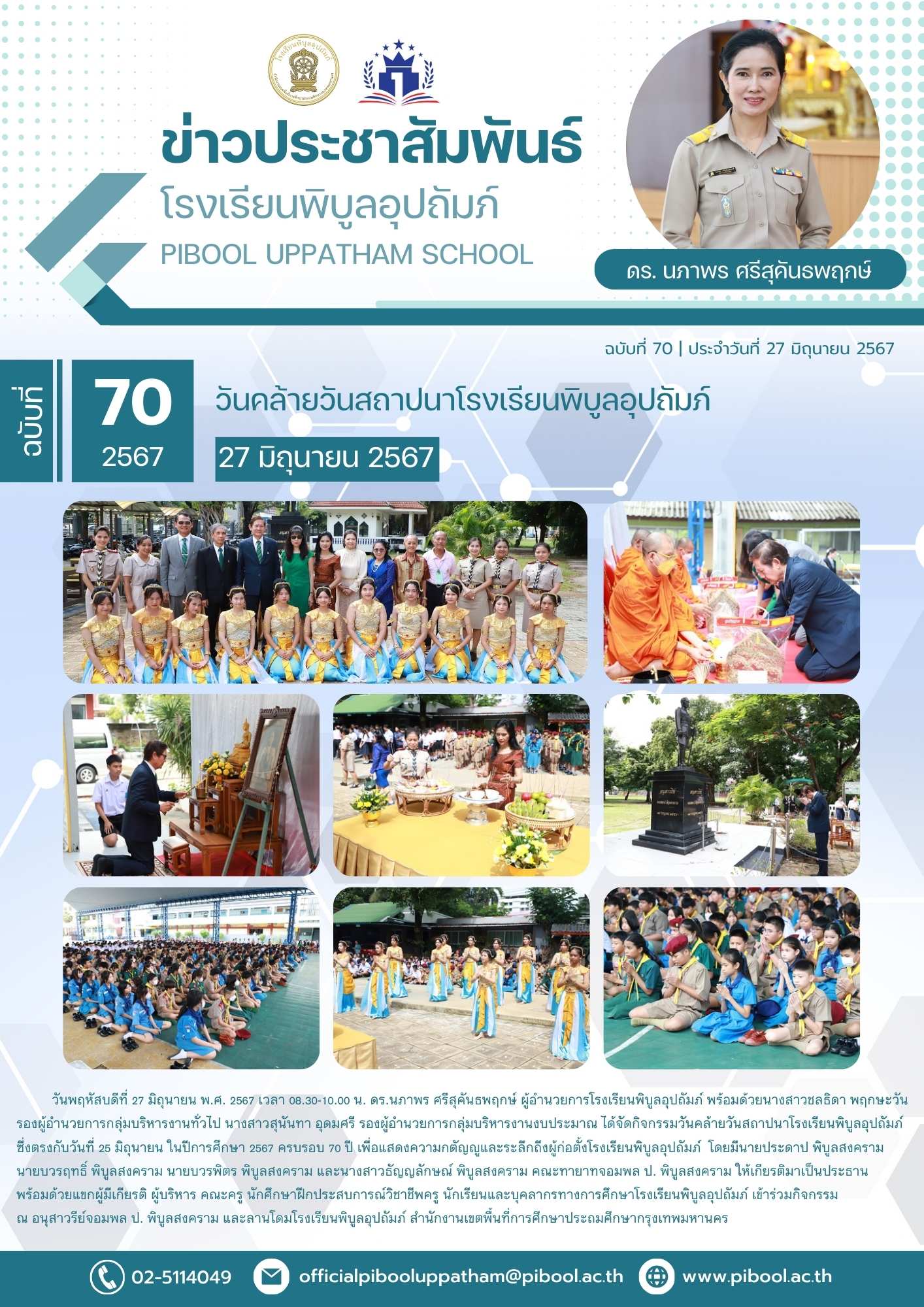 ข่าวประชาสัมพันธ์ ฉบับที่ 70/2567 วันคล้ายวันสถาปนาโรงเรียนพิบูลอุปถัมภ์