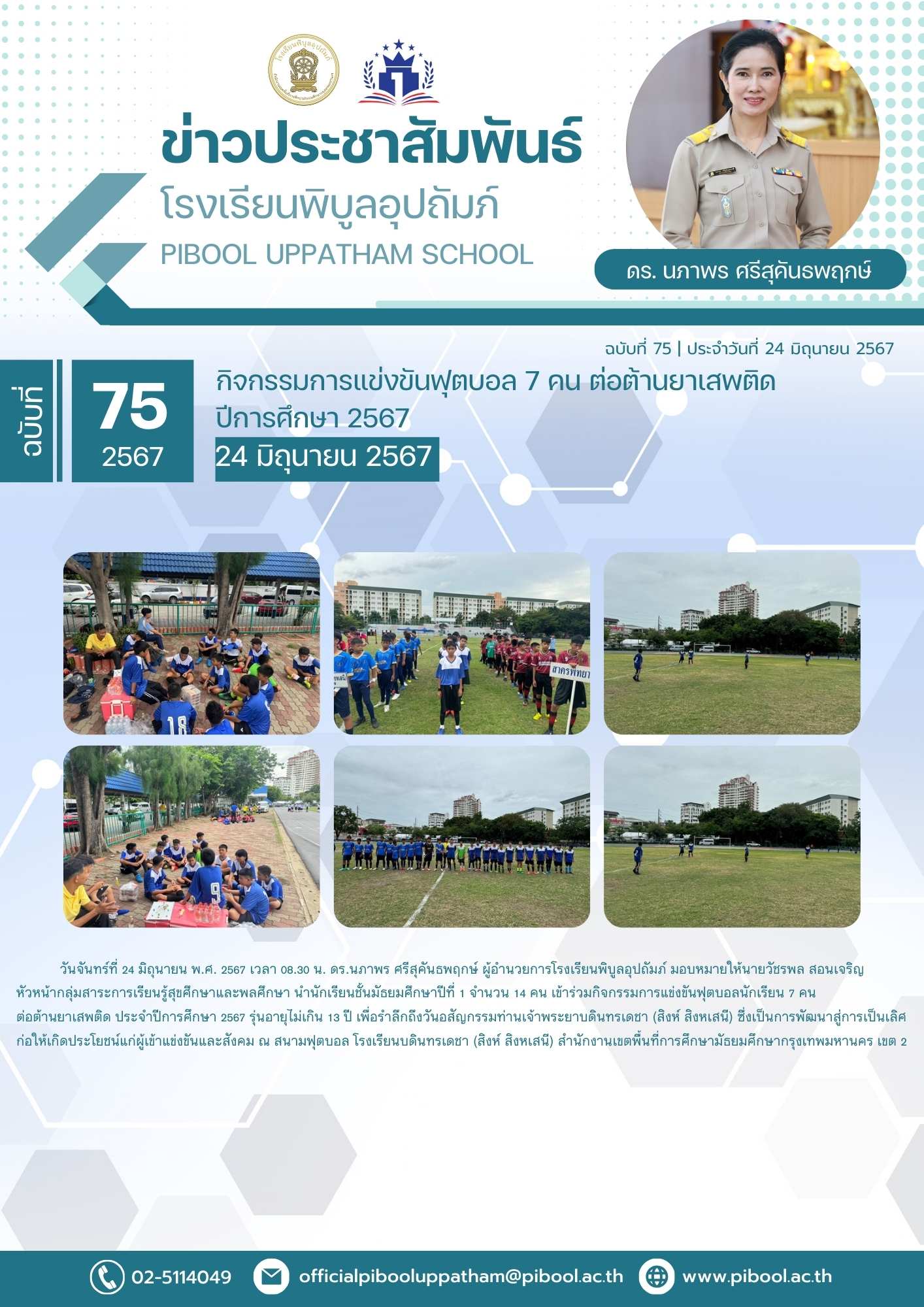 ข่าวประชาสัมพันธ์ ฉบับที่ 75/2567 กิจกรรมการแข่งขันฟุตบอล 7 คน ต่อต้านยาเสพติด ปีการศึกษา 2567