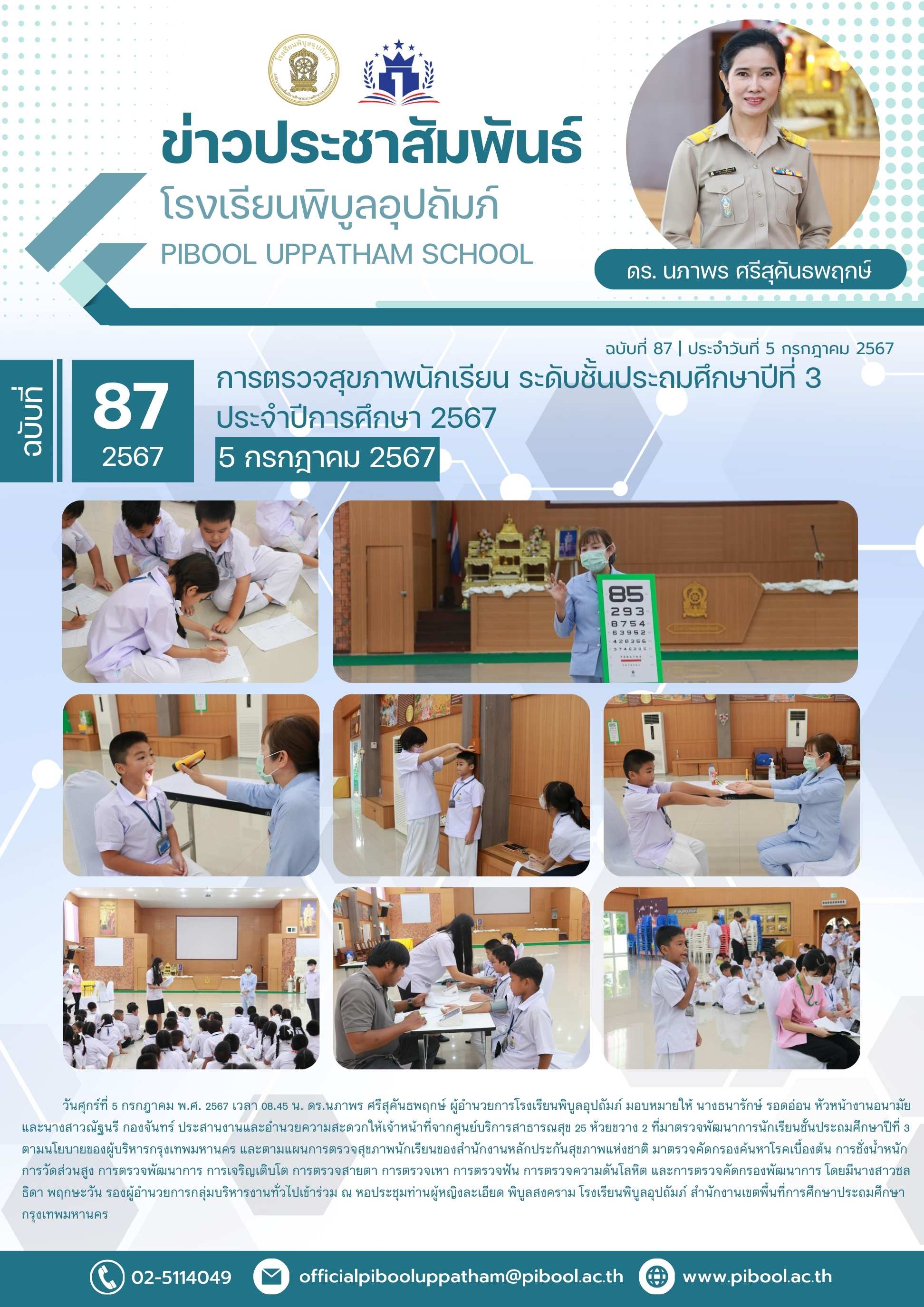 ข่าวประชาสัมพันธ์ ฉบับที่ 87/2567 การตรวจสุขภาพนักเรียน ระดับชั้นประถมศึกษาปีที่ 3 ประจำปีการศึกษา 2567