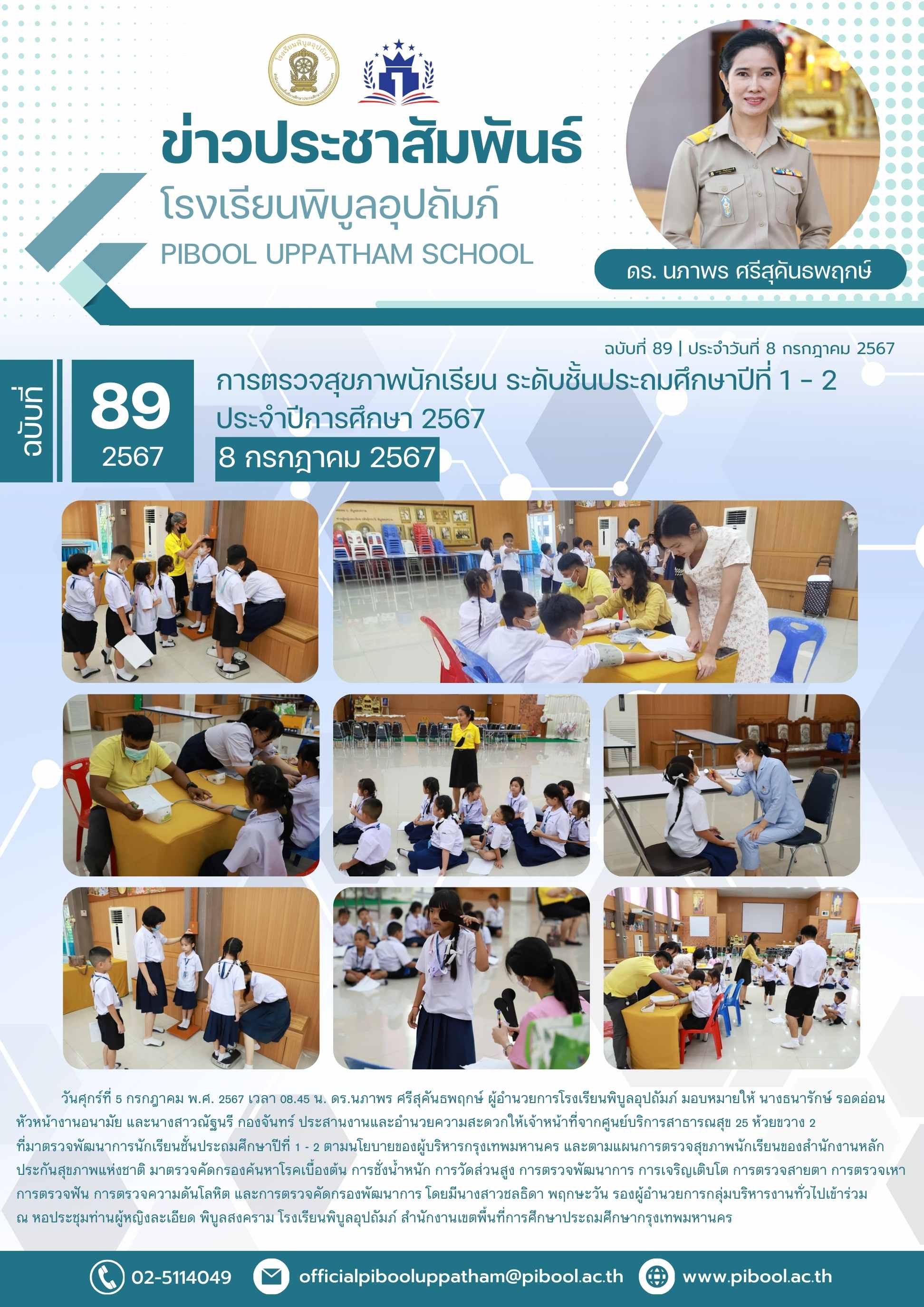 ข่าวประชาสัมพันธ์ ฉบับที่ 89/2567 การตรวจสุขภาพนักเรียน ระดับชั้นประถมศึกษาปีที่ 1 - 2 ประจำปีการศึกษา 2567