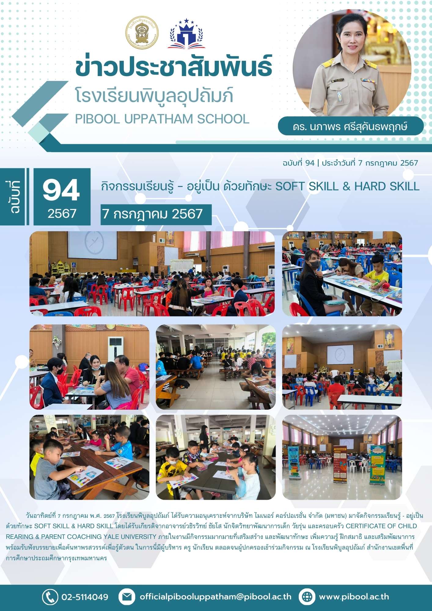 วันอาทิตย์ที่ 7 กรกฎาคม พ.ศ. 2567 โรงเรียนพิบูลอุปถัมภ์ ได้รับความอนุเคราะห์จากบริษัท ไมเนอร์ คอร์ปอเรชั่น จำกัด (มหาชน) มาจัดกิจกรรมเรียนรู้ - อยู่เป็น ด้วยทักษะ Soft skill & Hard skill โดยได้รับเกียรติจากอาจารย์วชิรวิทย์ ชัยโส นักจิตวิทยาพัฒนาการเด็ก วัยรุ่น และครอบครัว Certificate of Child Rearing & Parent Coaching Yale University ภายในงานมีกิจกรรมมากมายที่เสริมสร้าง และพัฒนาทักษะ เพิ่มความรู้ ฝึกสมาธิ และเสริมพัฒนาการ พร้อมรับฟังบรรยายเพื่อค้นหาพรสวรรค์เพื่อรู้ตัวตน ในการนี้มีผู้บริหาร ครู นักเรียน ตลอดจนผู้ปกครองเข้าร่วมกิจกรรม ณ โรงเรียนพิบูลอุปถัมภ์ สำนักงานเขตพื้นที่การศึกษาประถมศึกษากรุงเทพมหานคร
