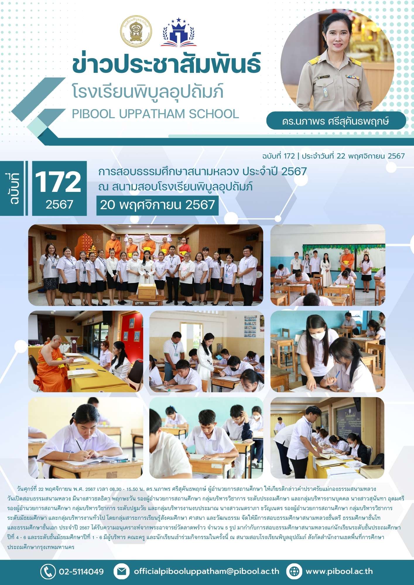 ข่าวประชาสัมพันธ์ ฉบับที่ 172/2567 การสอบธรรมศึกษาสนามหลวง ประจำปี 2567 ณ สนามสอบโรงเรียนพิบูลอุปถัมภ์