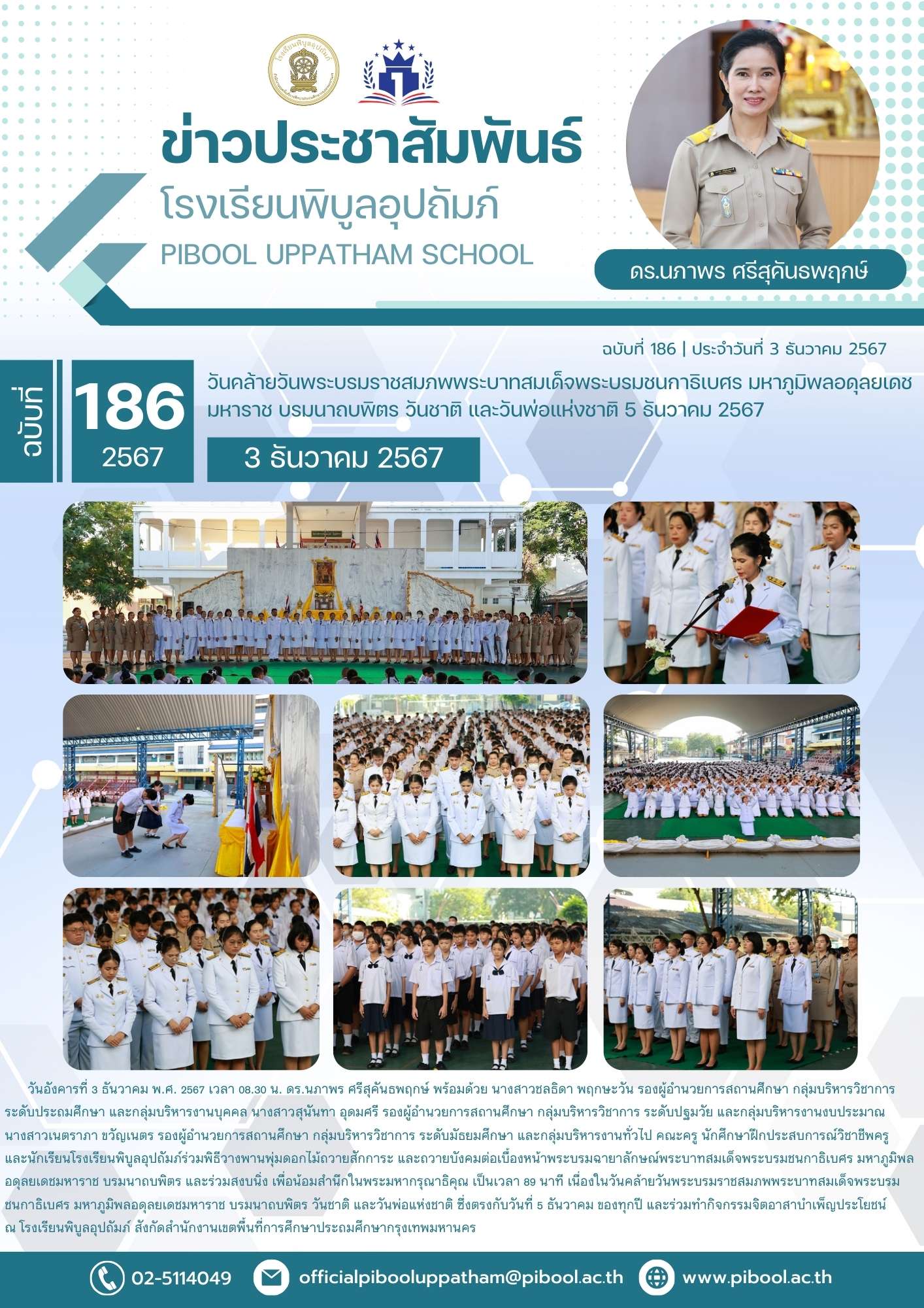 ข่าวประชาสัมพันธ์ ฉบับที่ 186/2567 วันคล้ายวันพระบรมราชสมภพพระบาทสมเด็จพระบรมชนกาธิเบศร มหาภูมิพลอดุลยเดชมหาราช บรมนาถบพิตร วันชาติ และวันพ่อแห่งชาติ 5 ธันวาคม 2567