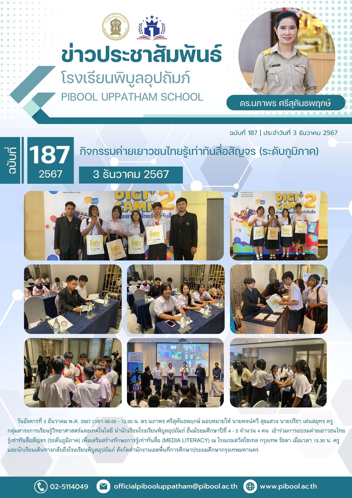 ข่าวประชาสัมพันธ์ ฉบับที่ 187/2567 กิจกรรมค่ายเยาวชนไทยรู้เท่าทันสื่อสัญจร (ระดับภูมิภาค)