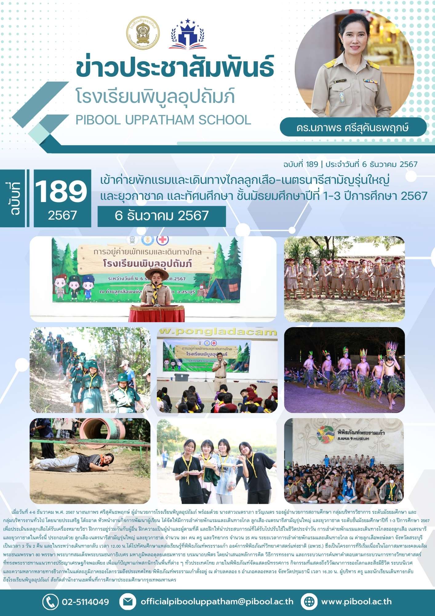 ข่าวประชาสัมพันธ์ ฉบับที่ 189/2567 เข้าค่ายพักแรมและเดินทางไกลลูกเสือ-เนตรนารีสามัญรุ่นใหญ่ และยุวกาชาด และทัศนศึกษา ชั้นมัธยมศึกษาปีที่ 1-3 ปีการศึกษา 2567