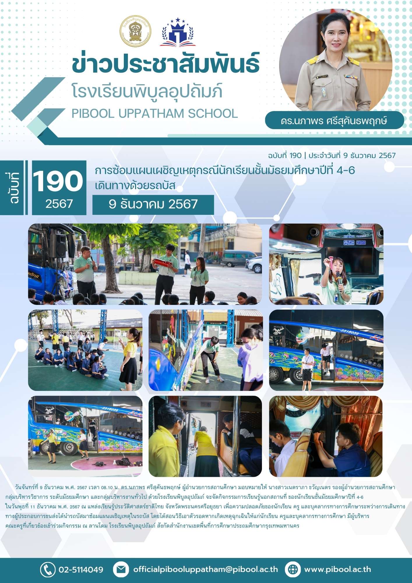 ข่าวประชาสัมพันธ์ ฉบับที่ 190/2567 การซ้อมแผนเผชิญเหตุกรณีนักเรียนชั้นมัธยมศึกษาปีที่ 4-6 เดินทางด้วยรถบัส