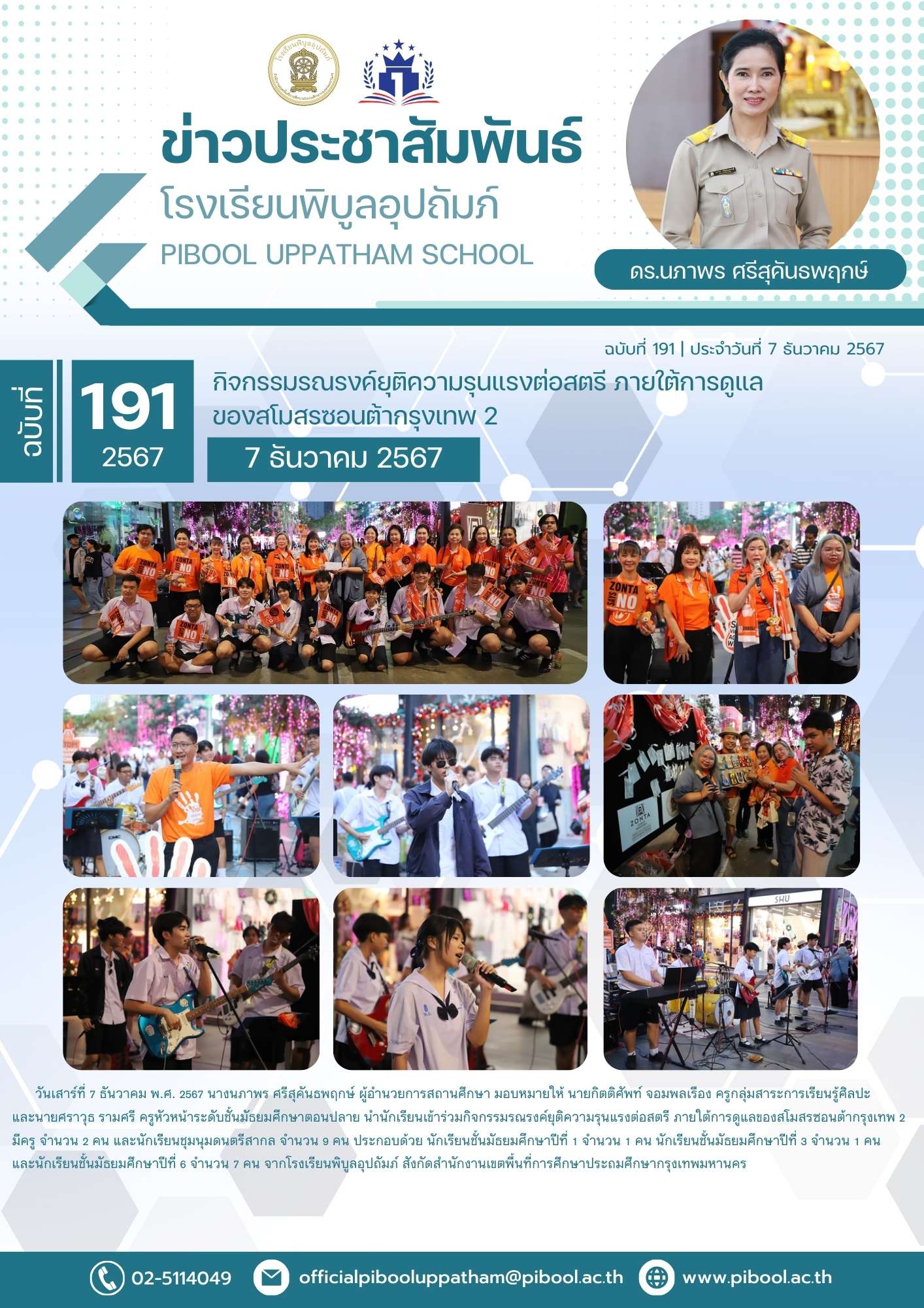 ข่าวประชาสัมพันธ์ ฉบับที่ 191/2567 กิจกรรมรณรงค์ยุติความรุนแรงต่อสตรี ภายใต้การดูแล ของสโมสรซอนต้ากรุงเทพ 2